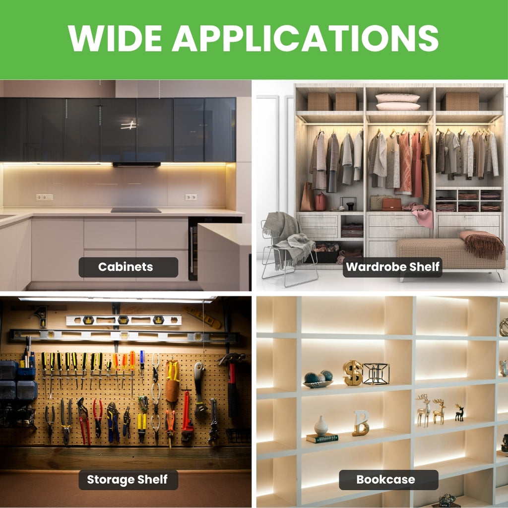 Ideal for wardrobe lighting, helping you clearly see clothing and accessories even in low-light areas. The compact design fits easily under shelves or inside cabinet compartments. -