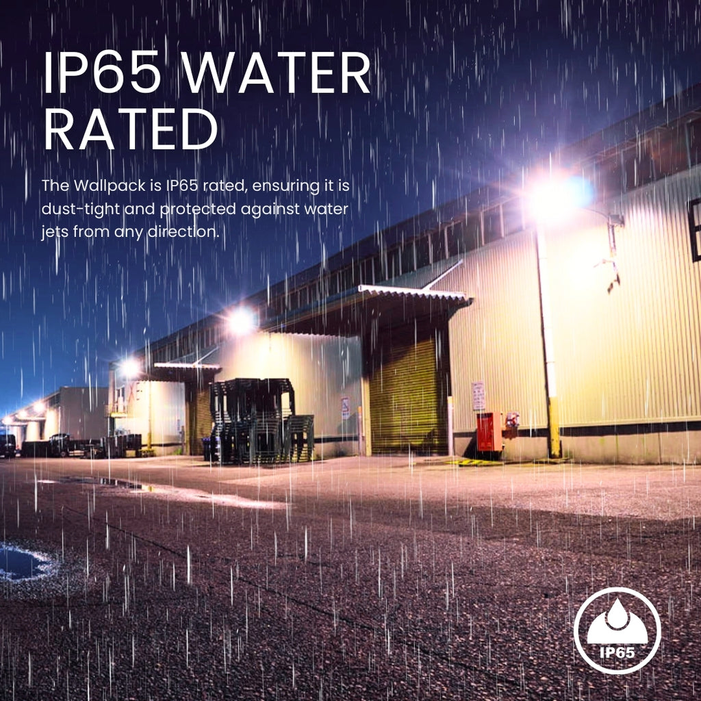 Weatherproof Construction - Rated IP65 for water and dust resistance, this LED wall pack is ideal for reliable outdoor use. The commercial-grade aluminum housing features a high-quality, shatter-resistant epoxy lens engineered to withstand heat, impact, and harsh environmental conditions.